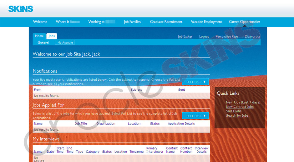 previewSite level skin to provide the link between inhouse built applications and Oracle.